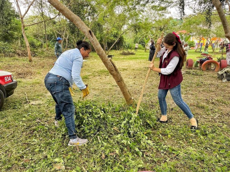 Como parte de las acciones de la Jornada de Paz, autoridades y ciudadanía sumaron esfuerzos en un tequio comunitario para el rescate de un espacio público ubicado en la calle Prolongación Cruz Chiquita, en la colonia Xanath, perteneciente al barrio del Naranjo.