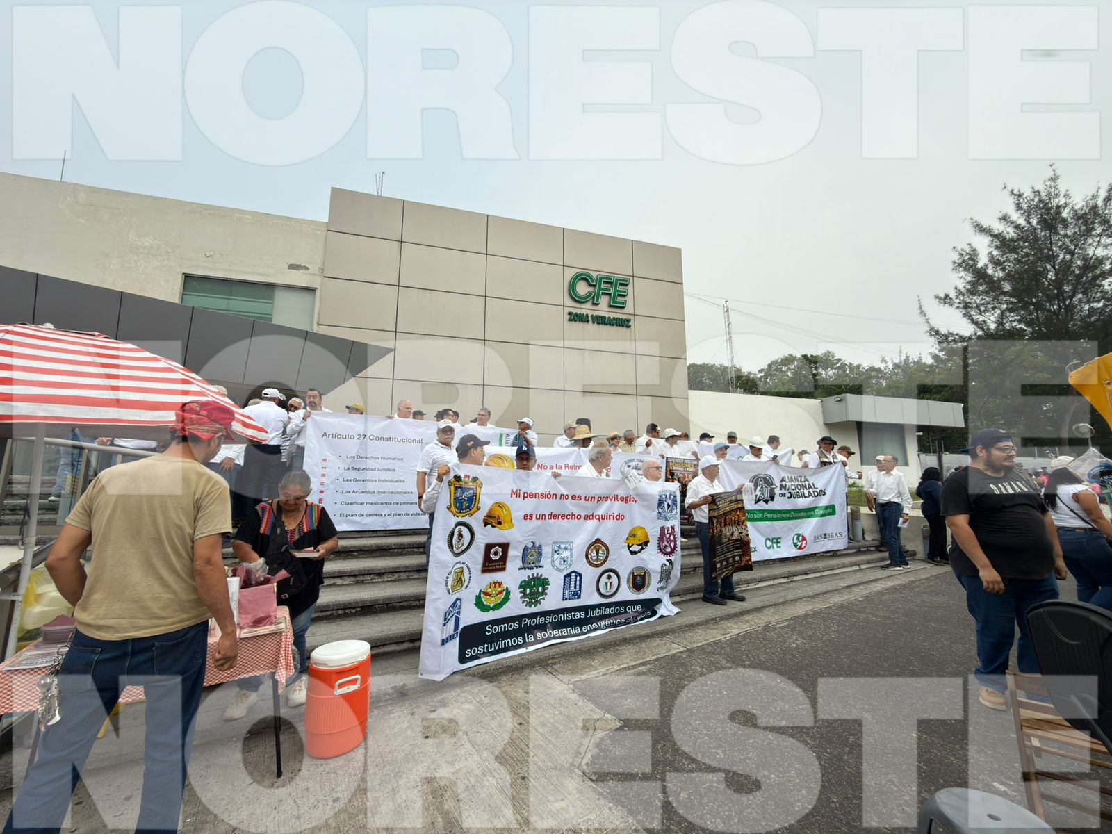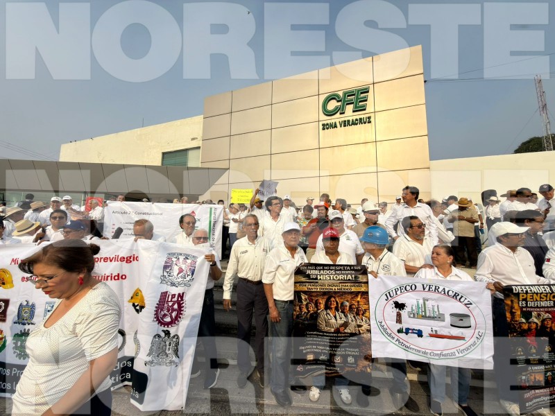 Jubilados de la Comisión Federal de Electricidad se manifestaron en oficinas de la paraestatal para exigir que se reviertan las reducciones a sus pensiones, medida que aseguran afecta a miles de extrabajadores.