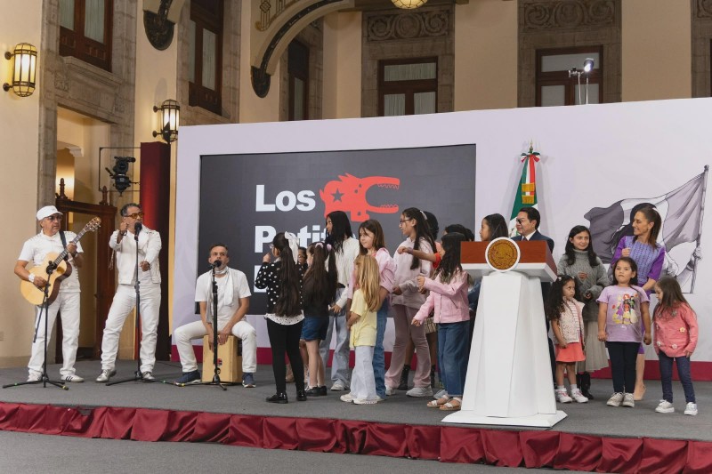 En la conferencia matutina, a la que asistieron niñas y niños invitados, se presentó la agrupación de rock infantil “Patita de Perro” quien interpretó "Vamos a brincar" y "Chin-chin el que se mueva".
