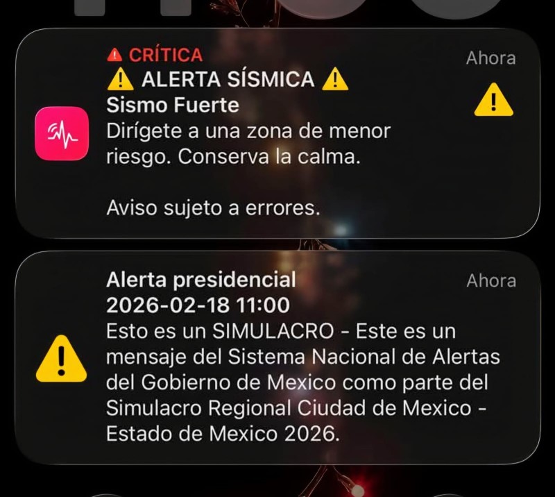 El aviso será emitido a través del Sistema Nacional de Alertas del Gobierno de México, el cual enviará un mensaje con la leyenda “Esto es un simulacro”, acompañado de una señal sonora, con el objetivo de probar su funcionalidad y alcance entre la población.
