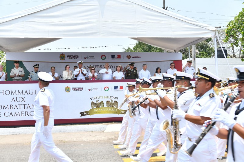 El Gobierno de Veracruz conmemoró el 163 aniversario de la Batalla de Camarón, una de las gestas más emblemáticas de la historia nacional, acto que reunió a autoridades civiles y militares, así como a representantes diplomáticos de Francia.