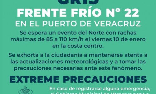 Alerta Gris por el Frente Frío No. 22 en el Puerto de Veracruz