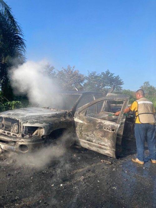 Incendio de camioneta en carretera 180, cerca del fraccionamiento renacimiento 2000
