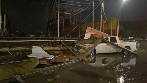 Camioneta queda destrozada tras caída de techado en Plaza 52 de Poza Rica