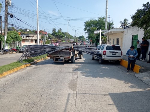 Varillas se desprenden de camioneta y dañan vehículo estacionado en Tuxpan
