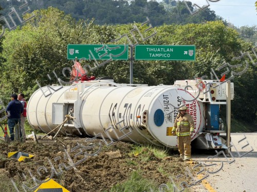 Volcadura de pipa cierra carretera Poza Rica -Tihuatlán