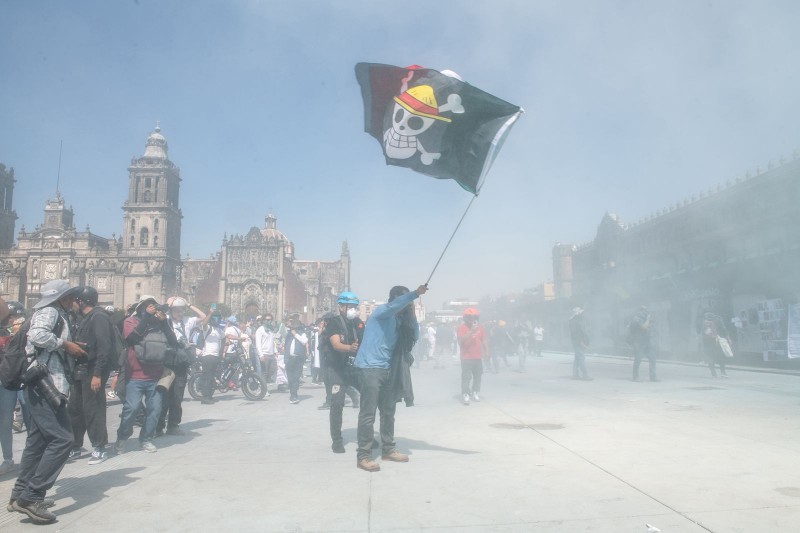 En los actos violentos se utilizaron artefactos explosivos de fabricación casera, cohetones, herramientas y objetos lanzados contra los cuerpos de seguridad y contra personas que transitaban por el Zócalo capitalino.