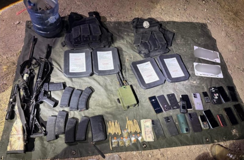 También mencionó que al interior de este inmueble se decomisó un arma larga tipo AR-15, un rifle de postas, ocho cargadores, 90 cartuchos, un inhibidor de señales de 12 antenas, dos chalecos tácticos con dos placas balísticas cada uno.