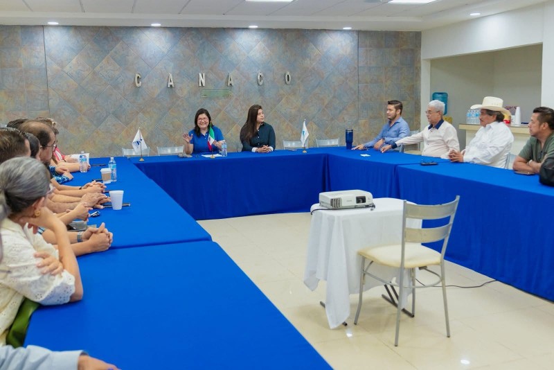 La presidenta municipal electa, Adanely Rodríguez sostuvo un encuentro con integrantes de la Cámara Nacional de Comercio, Servicios y Turismo (CANACO) Poza Rica, encabezados por su presidenta Claudia Reyna Ledezma, con el objetivo de fortalecer el diálogo y la coordinación con el sector empresarial.