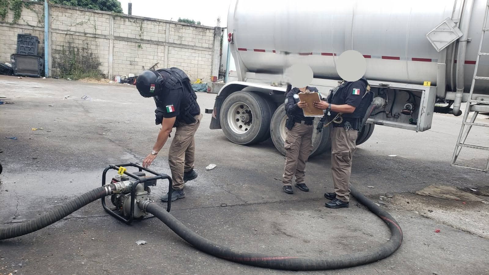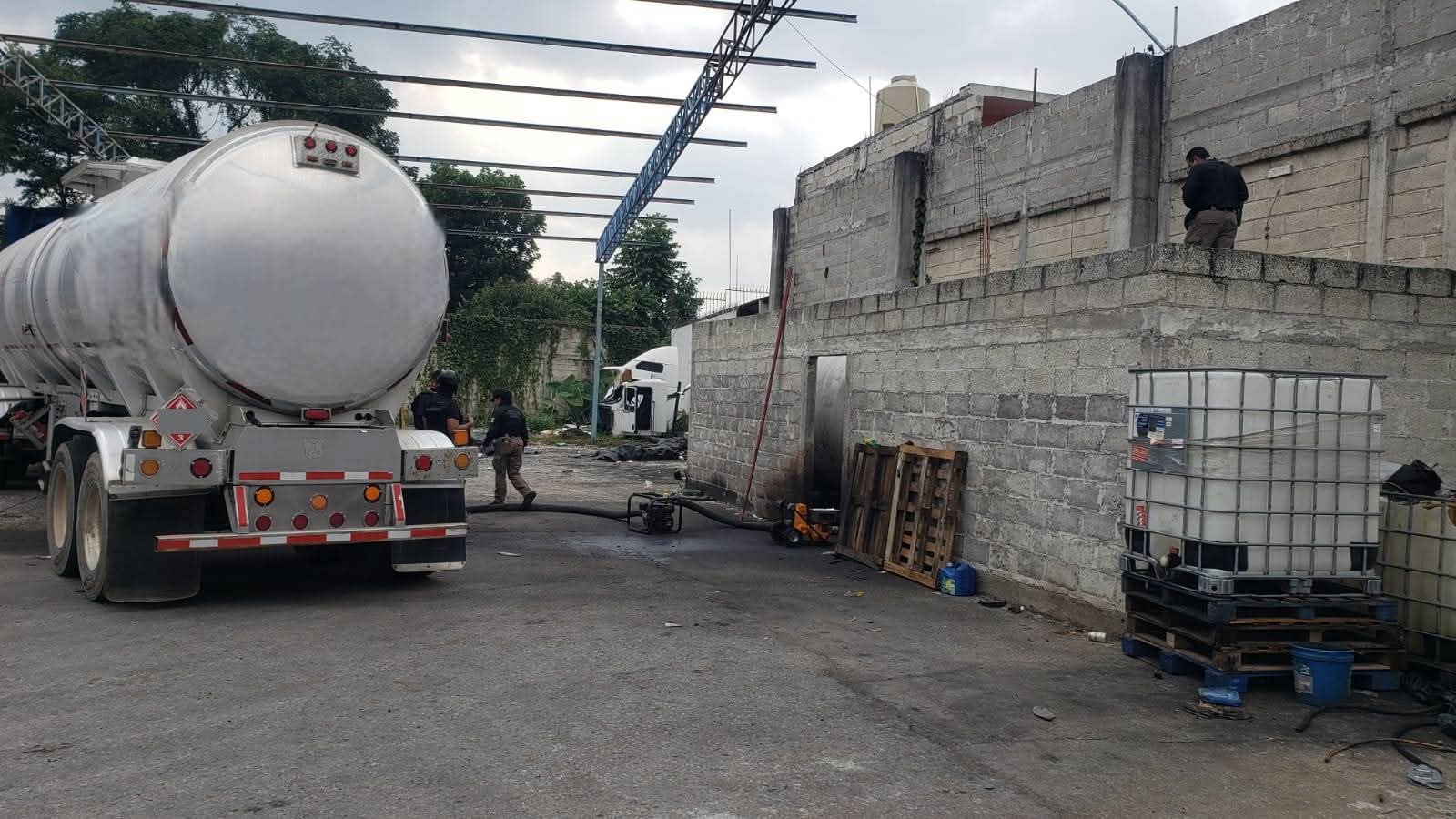 Durante la intervención, las autoridades localizaron aproximadamente 32 mil litros de hidrocarburo, además de dos contenedores metálicos cilíndricos y una amplia flotilla de vehículos, entre ellos dos pipas, dos remolques tipo jaula, dos con caja seca, uno tipo plataforma, así como cuatro tractocamiones, dos autos particulares, cuatro camionetas, una motocicleta y un dolly.