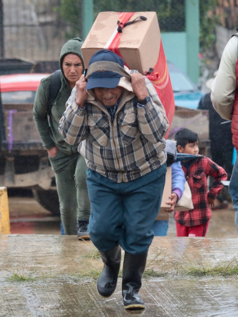 Durante la jornada, el personal distribuyó 804 paquetes alimentarios, mil 608 cobijas y mil 950 raciones de comidas calientes, de las cuales mil 500 correspondieron a personas adultas y 450 a niñas y niños.