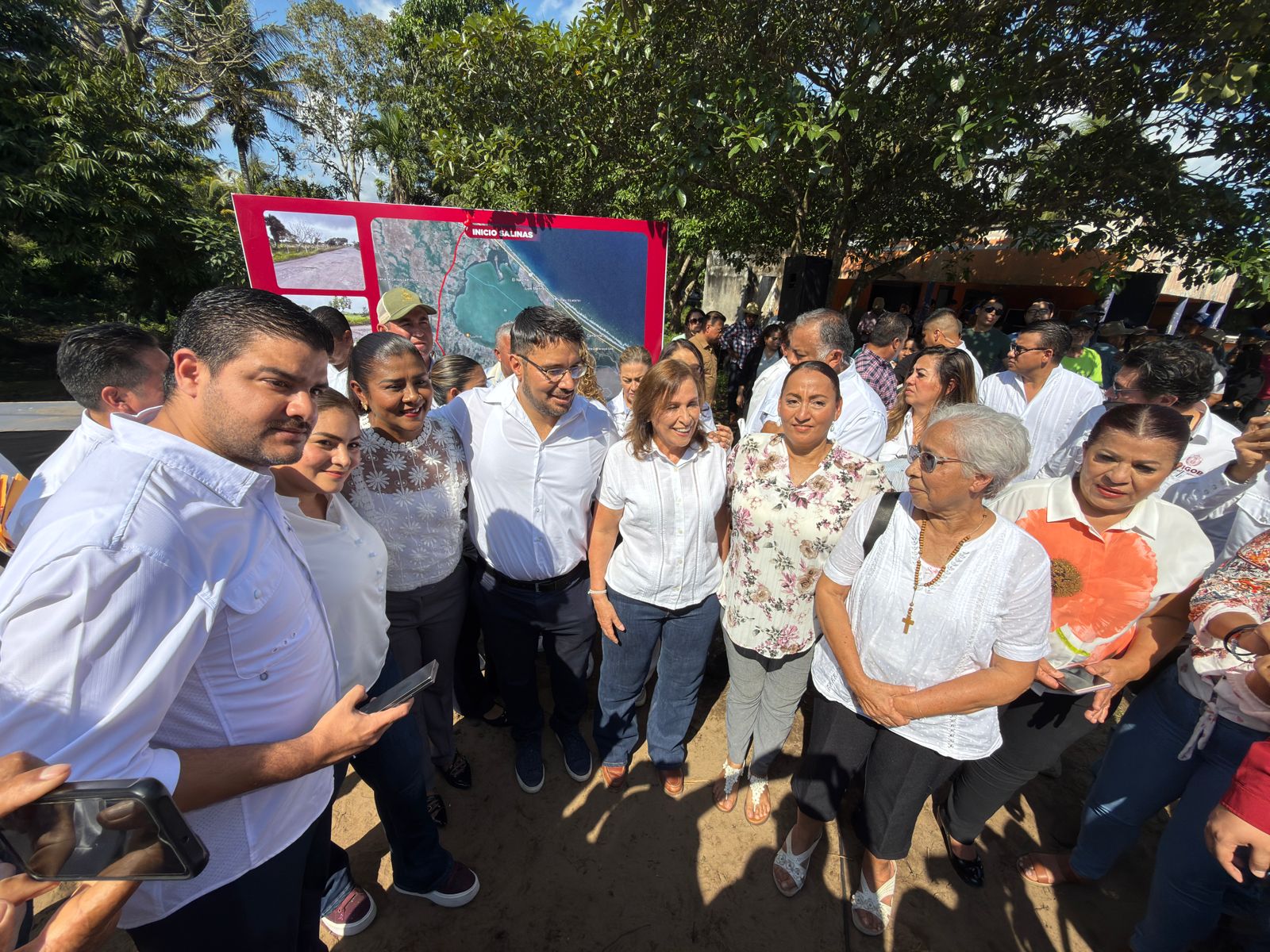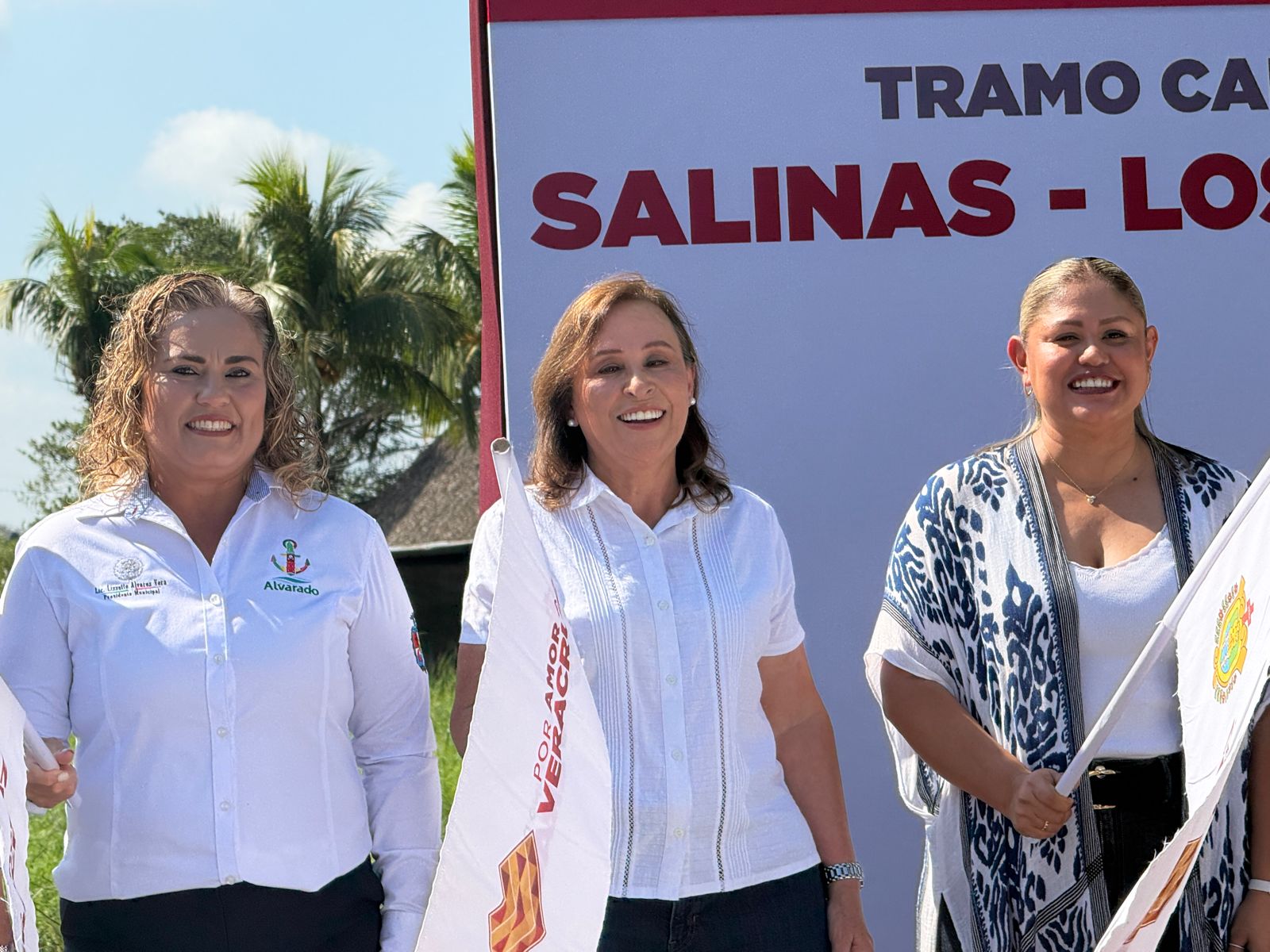 Nahle García acudió este sábado 27 de diciembre a la comunidad de Salinas en el municipio de Alvarado para realizar el banderazo de inicio de la obra de repavimentación de tramo carretero Salinas-Los Cántaros.