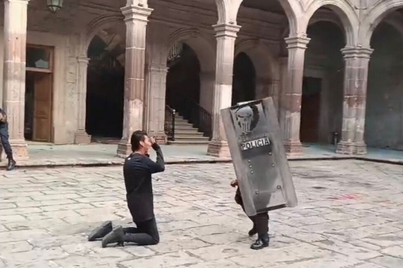 En redes sociales se viralizó un video en donde el joven de 28 años de edad fue sometido al momento en que policías estatales entraron al Palacio de Gobierno para detener a los manifestantes que irrumpieron en el edificio.