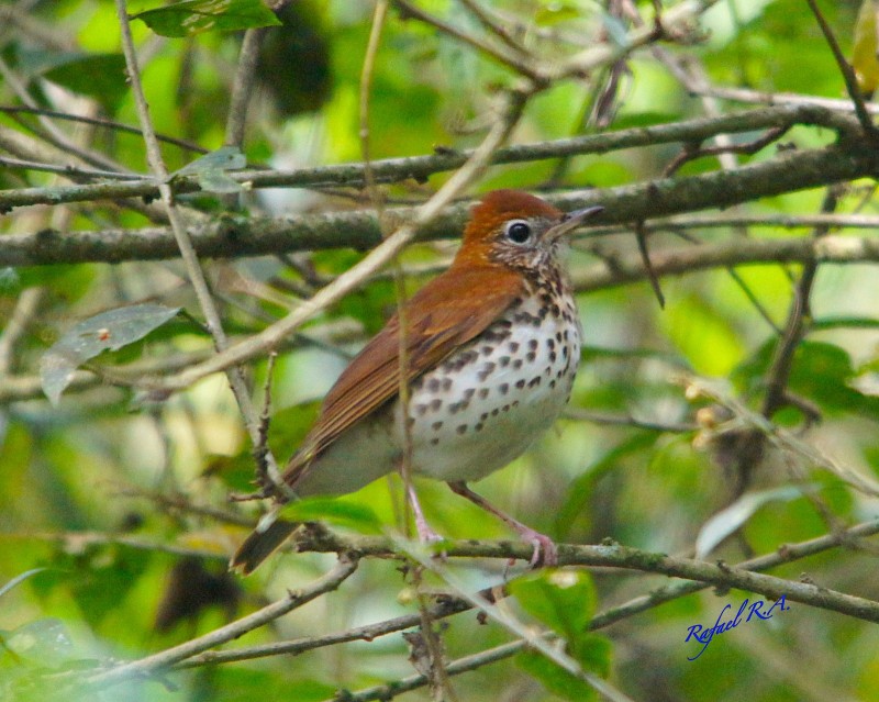 Zorzal maculado. Nartiva de Norteamerica, pasa el invierno en el Sur de México y hasta Centro América.