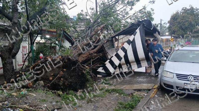 Los sucesos tuvieron lugar en las colonias División de Oriente Petromex se encuentra afectada por la caída de árboles en diversos tramos, afectando unidades particulares e incluso techos de algunos comercios .