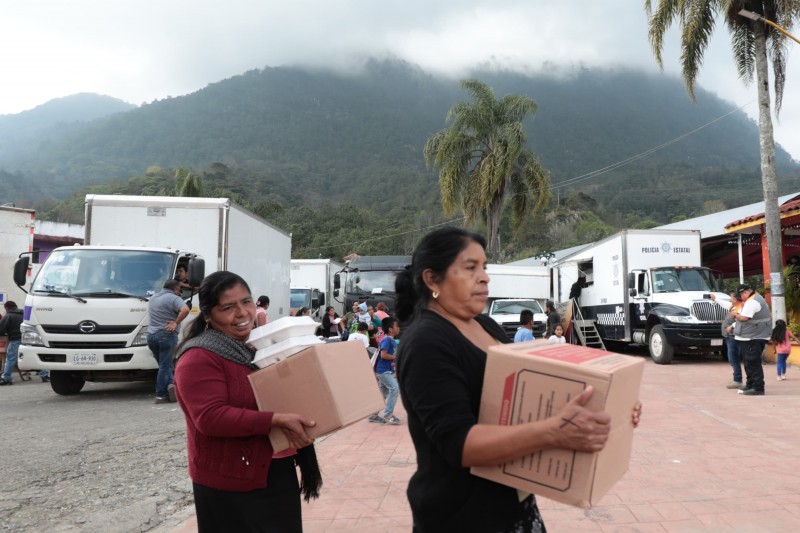 Con comidas calientes, paquetes alimentarios, cobijas y libros infantiles, arribó la Caravana Abrigando Corazones del Gobierno del Estado a los municipios de Magdalena, Aquila e Ixhuatlancillo, ubicados en la región de las Altas Montañas.