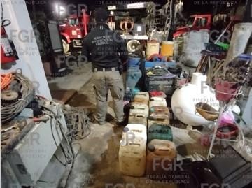 La acción fue ejecutada por la Fiscalía Especializada de Control Regional (FECOR), luego de obtener una orden de cateo para intervenir un predio donde se localizaron alrededor de 550 litros de combustible almacenado, además de cinco sistemas de videograbación, equipo de cómputo y un cartucho útil.