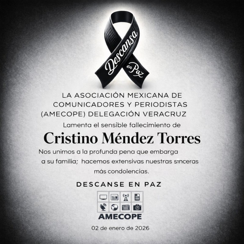 La Asociación Mexicana de Comunicadores y Periodistas (AMECOPE) delegación Veracruz, lamentó el fallecimiento del reportero, Cristino Méndez Torres.