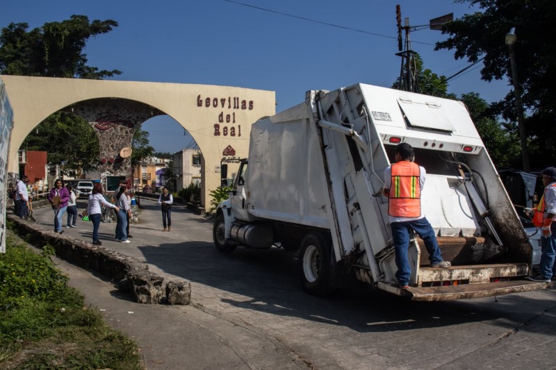 Hoy se ha dado un gran avance en materia de limpia pública, al ingresar por primera vez camiones recolectores de basura al fraccionamiento Geo Villas del Real, en el municipio de Coatzintla.