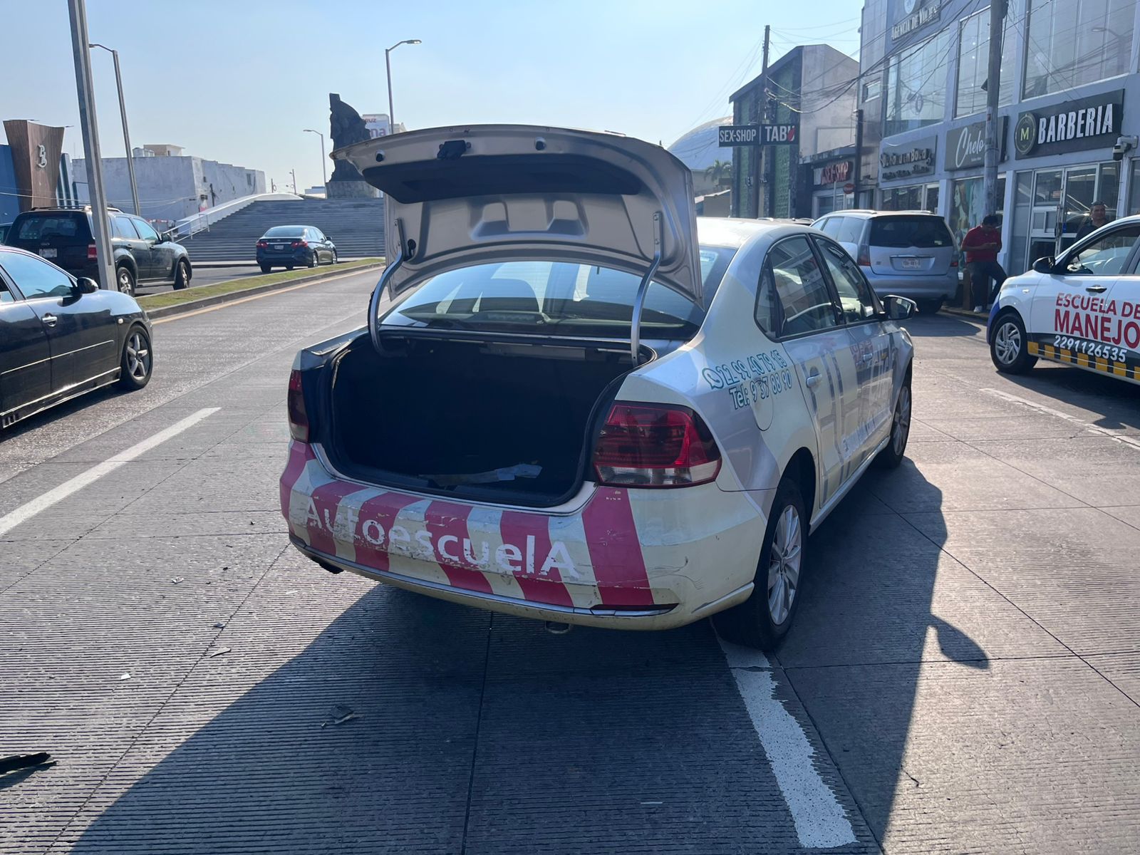 El vehículo de enseñanza vial circulaba con dirección de norte a sur sobre el bulevar al momento del choque, lo que obligó a ambos conductores a detenerse de inmediato y solicitar apoyo de las autoridades a través del número de emergencias.