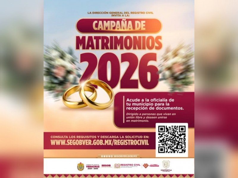 A través de esta campaña, se invita a las parejas que actualmente viven en unión libre y desean contraer matrimonio a acudir a la Oficialía del Registro Civil, donde se lleva a cabo la recepción de documentos, así como la orientación y consulta de los requisitos necesarios para participar en este programa. La atención se brinda en un horario de 8:00 de la mañana a 3:00 de la tarde, facilitando el acceso a la población interesada.