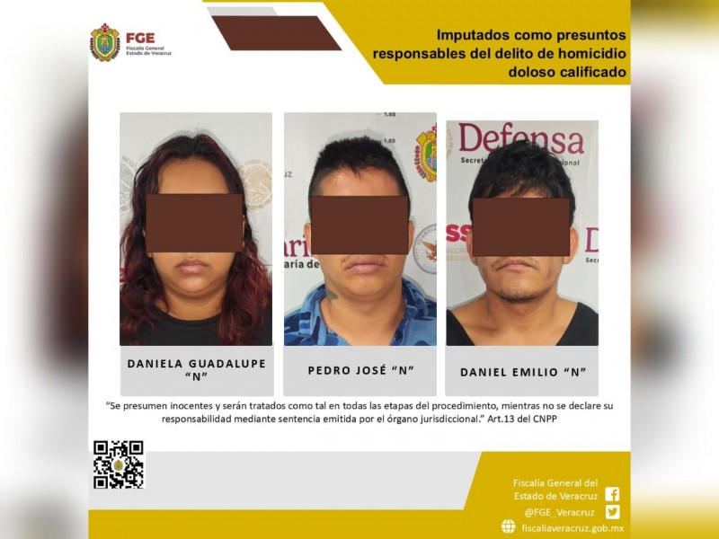 La Fiscalía Regional Coatzacoalcos realizó una imputación en contra de Daniela Guadalupe “N”, Pedro José “N” y Daniel Emilio “N”, como presuntos responsables del delito de homicidio doloso calificado, cometido en agravio de una víctima cuya identidad se encuentra legalmente reservada.