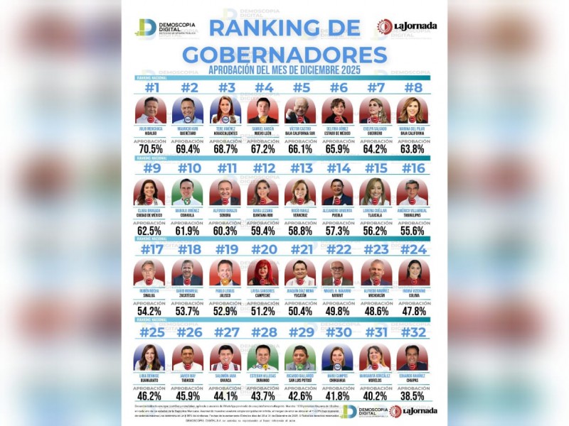 Este resultado posiciona a la mandataria en el lugar 13 del ranking nacional de titulares del Poder Ejecutivo, consolidándola como una de las gobernantes con mayor credibilidad en el país. El estudio, realizado en colaboración con el diario La Jornada Estado de México, destaca que la aprobación de Nahle García creció 2.6 puntos porcentuales respecto al mes de noviembre, cuando se situaba en un 56.2%.