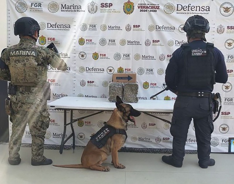 Durante operativos realizados en negocios dedicados al envío de paquetería, binomios caninos aseguraron dos kilogramos 374 gramos de hierba seca con características similares a la marihuana, así como ocho frascos goteros con cannabis.