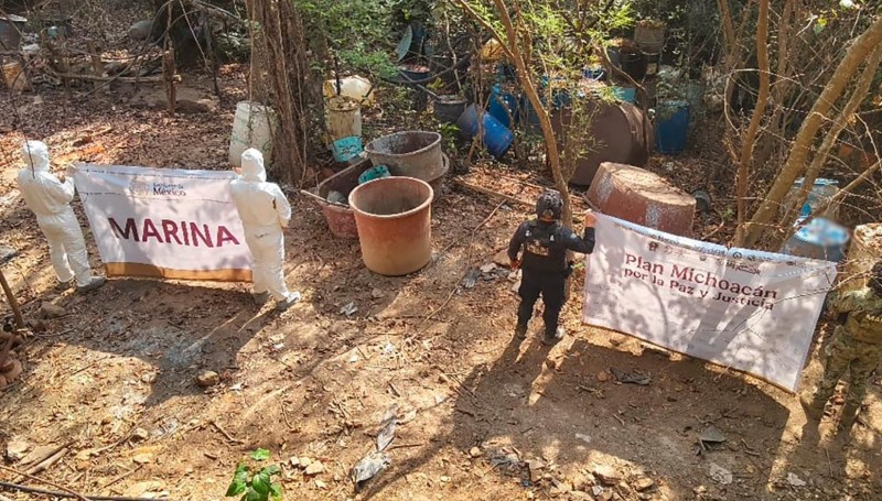 Durango (Localidad de Carricitos): Durante un recorrido terrestre, elementos navales hallaron un centro de producción a gran escala. En el sitio se aseguraron 1,150 litros y 695 kilos de precursores químicos. El complejo contaba con extensas áreas de operación que fueron inhabilitadas por completo.