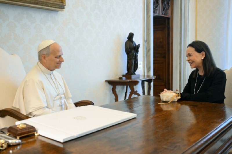 El papa León XIV recibió este lunes en el Vaticano a la líder opositora venezolana y nobel de la paz María Corina Machado, informó la oficina de prensa de la Santa Sede.