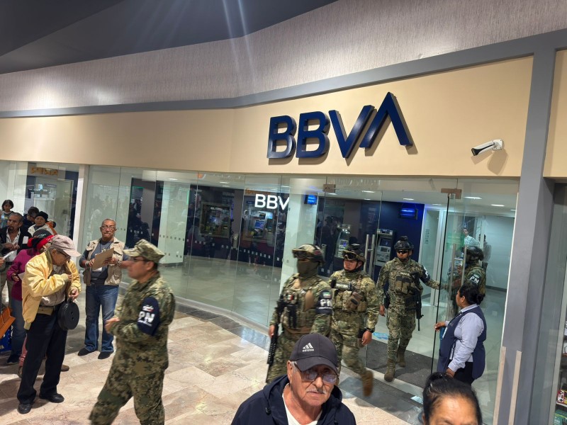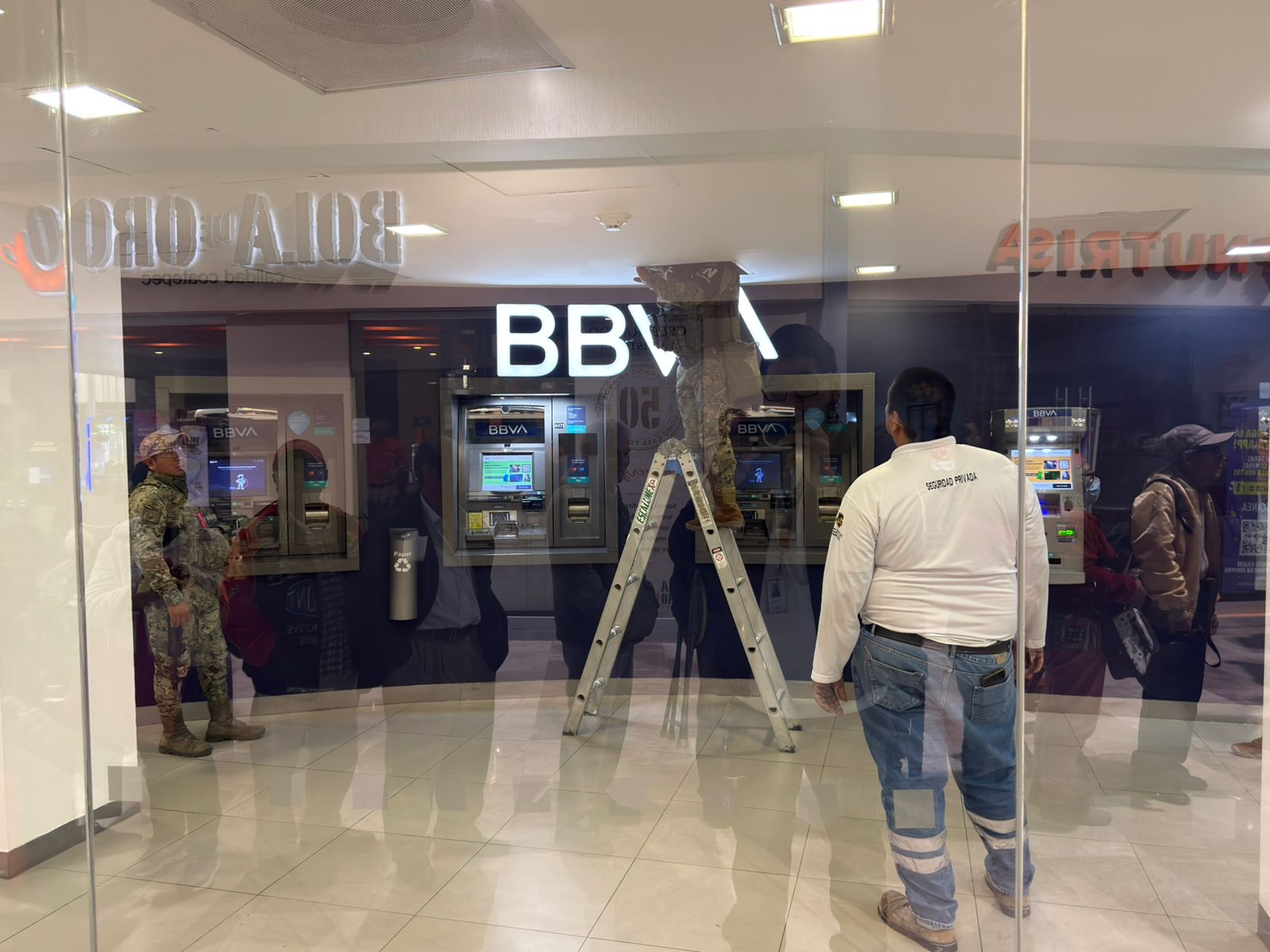 Una de las puertas del banco BBVA quedó completamente destrozada y algunos ductos de aire acondicionado daban muestra de haber sido manipulados.