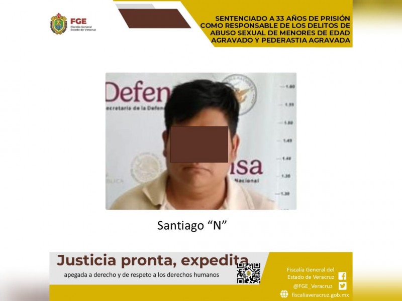 La Fiscalía General del Estado informa que, la Fiscalía Coordinadora Especializada en Delitos contra las Mujeres, Feminicidio, Familia y Trata de Personas obtuvo una sentencia condenatoria de 33 años de prisión en contra de Santiago “N”, como penalmente responsable de los delitos de abuso sexual de menores de edad agravado y pederastia agravada.