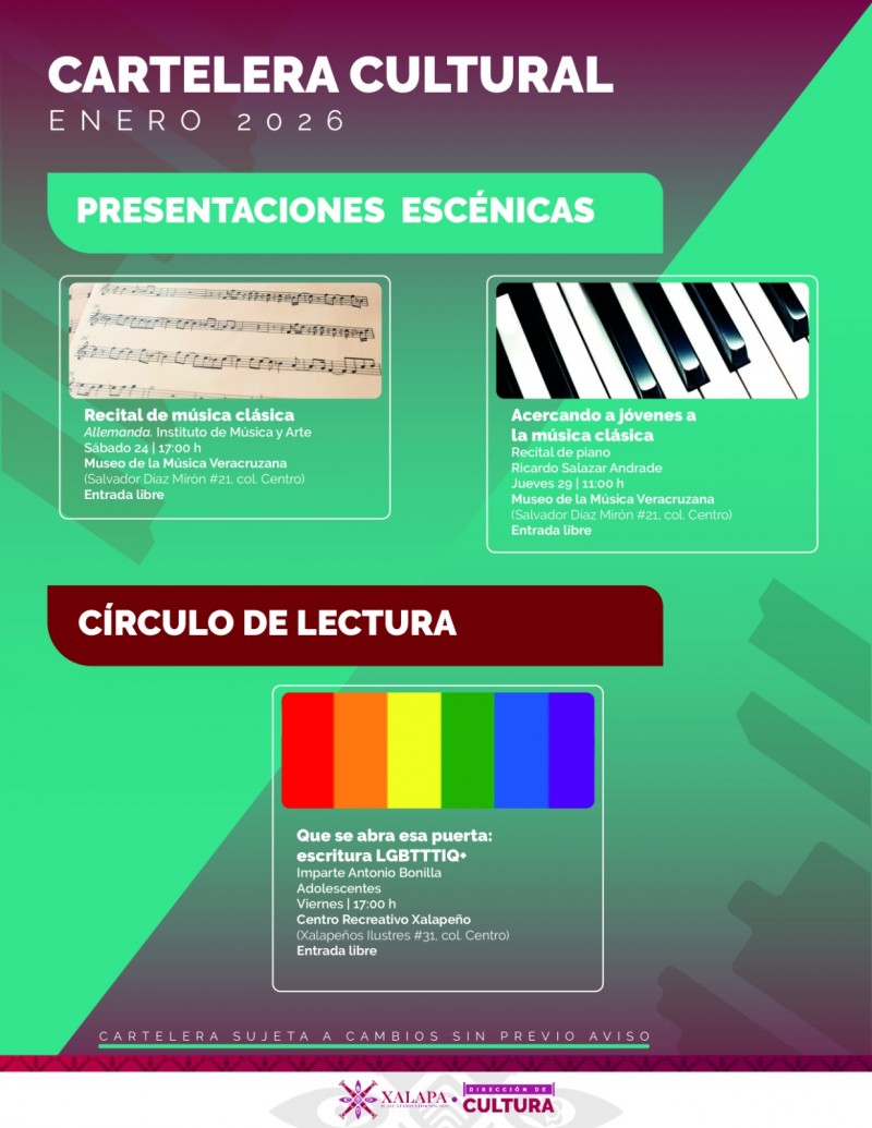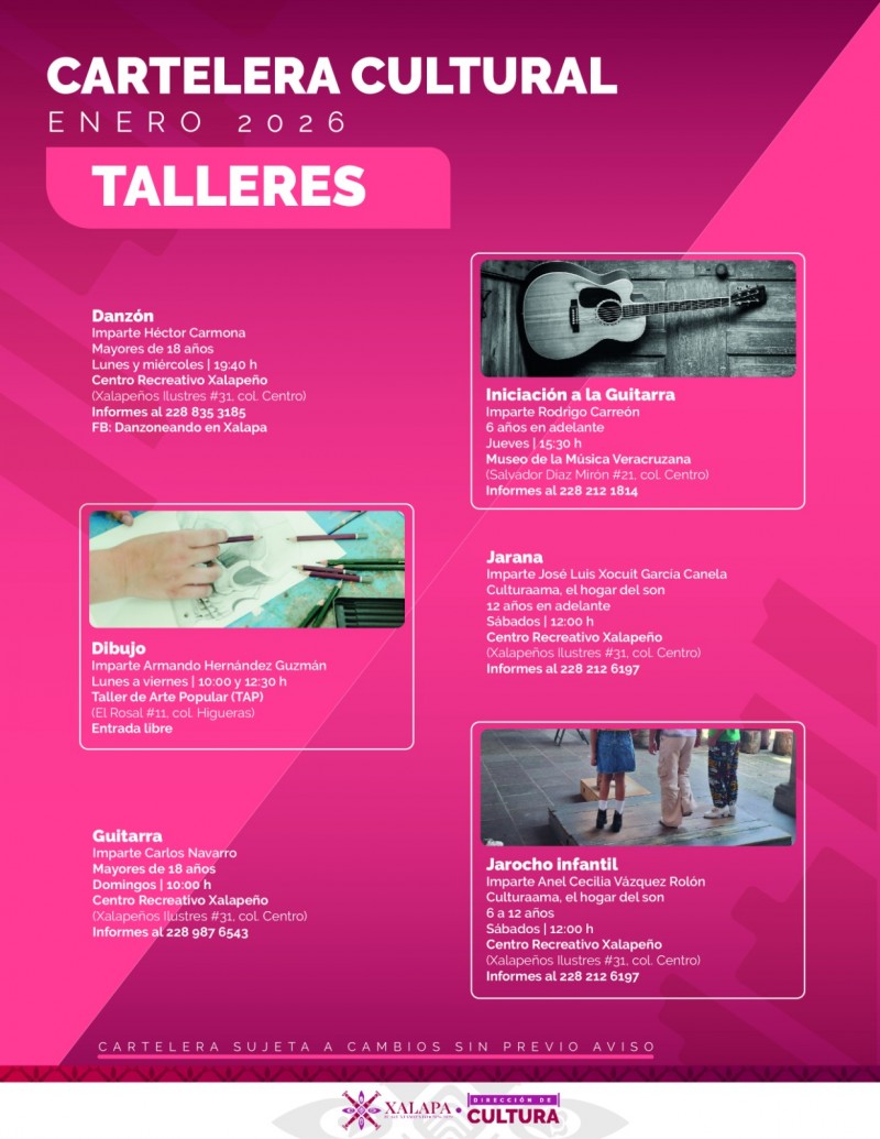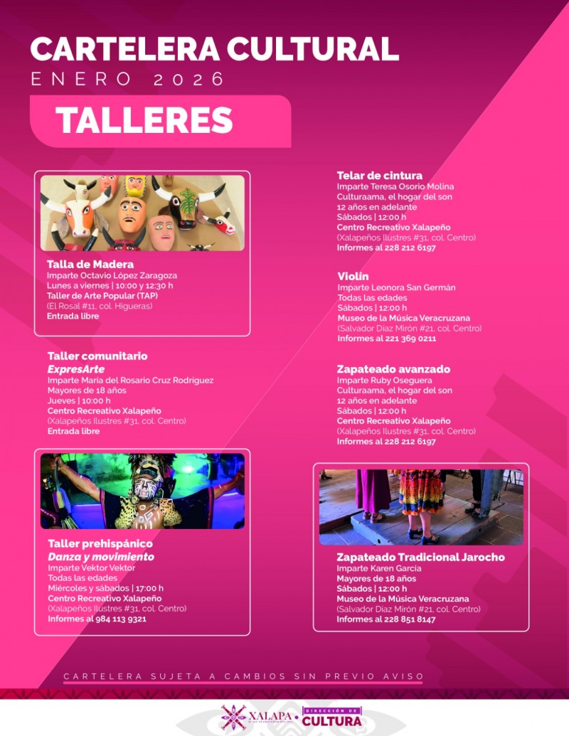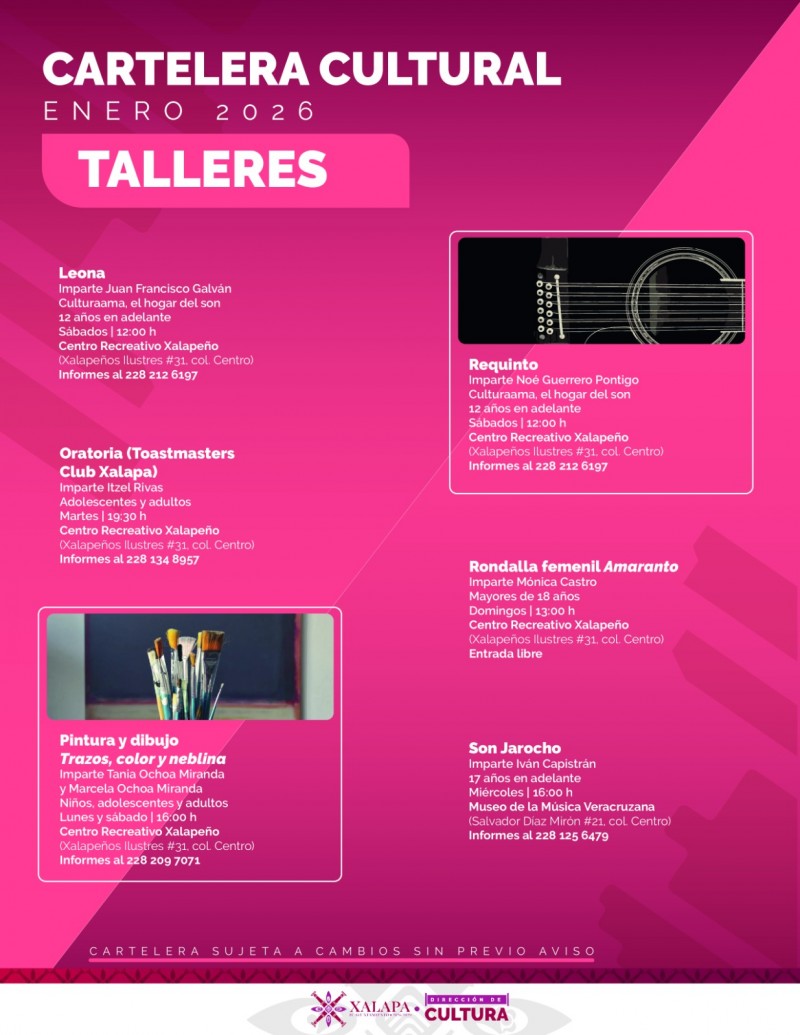 Para más informes de las actividades, sedes y horarios, la población se puede comunicar al número telefónico de la Dirección de Cultura: 228 2982390.