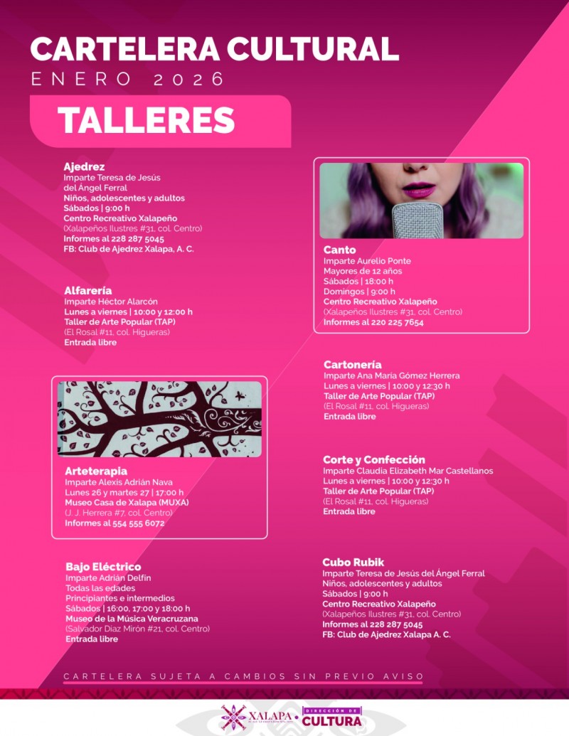 Talleres, cine, música y más incluye la agenda cultural que organiza el Ayuntamiento de Xalapa para recreación de las familias, en distintos recintos y espacios públicos.