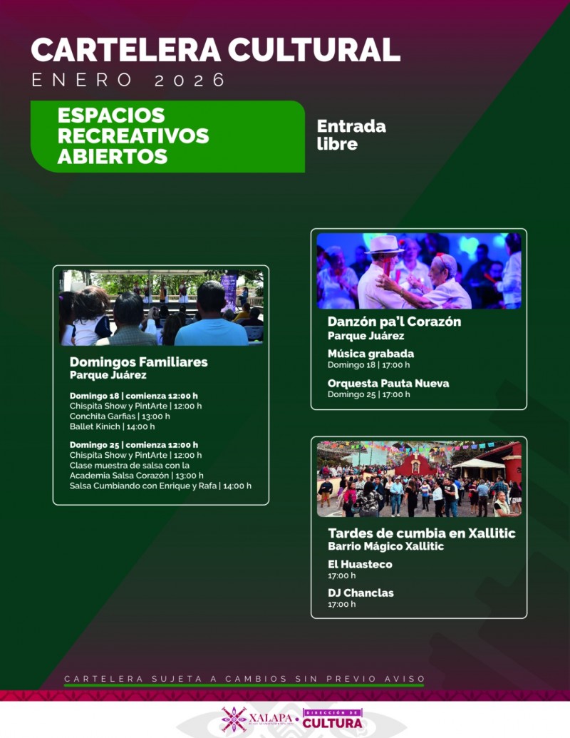 A las 17:00 horas, en el mismo lugar, se tendrá el programa “Danzón pa´l Corazón”, con la participación de la Orquesta Pauta Nueva, el domingo 25 de enero.