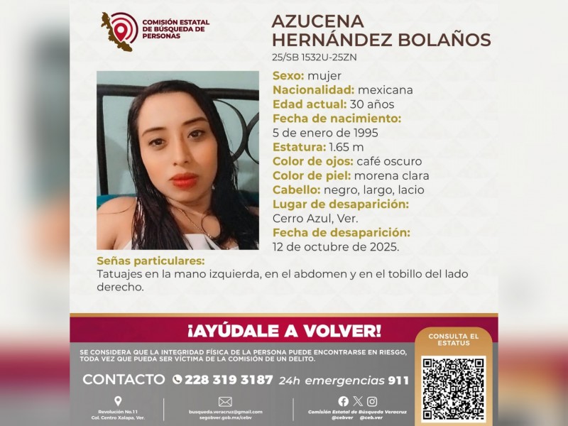 Los registros de búsqueda indican que la víctima había sido reportada como desaparecida desde el 12 de octubre de 2025, luego de ser vista por última vez en el municipio de Cerro Azul, sin que se tuviera información sobre su paradero hasta el hallazgo.