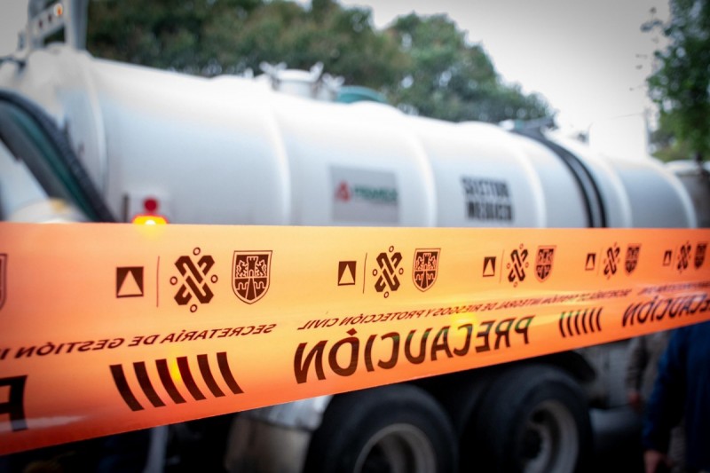 El hallazgo se registró sobre avenida Tezozómoc, en la colonia San Antonio, luego de una denuncia ciudadana por un fuerte olor a gasolina. Tras el reporte, la titular de la SGIRPC, Myriam Urzúa, acudió al sitio junto con elementos de seguridad para coordinar las labores de atención.