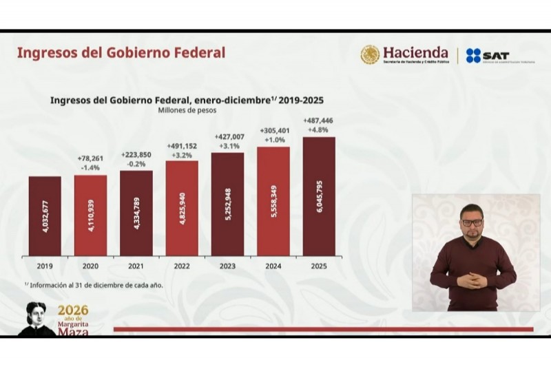 El Servicio de Administración Tributaria (SAT) cerró el ejercicio fiscal 2025 con cifras positivas que superaron las expectativas presupuestarias. Antonio Martínez Dagnino, titular del organismo, informó que los ingresos de la Federación registraron un crecimiento del 4.8% en términos reales en comparación con el año anterior, consolidando la eficiencia recaudatoria del gobierno federal.