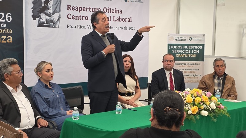 Durante la inauguración de las oficinas del CFCRL en Poza Rica, ubicadas sobre la calle 12 de la colonia Cazones, el funcionario destacó que la resolución de conflictos laborales registró un incremento significativo durante el año 2025, reflejo de una mayor confianza de trabajadores y empleadores en los mecanismos de diálogo.