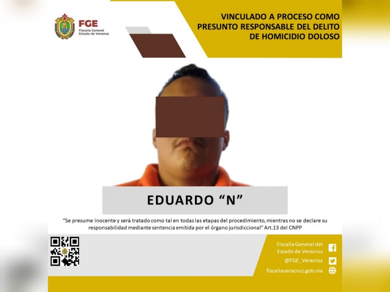 La Fiscalía General del Estado, a través de la Fiscalía Regional Tuxpan, obtuvo vinculación a proceso en contra de Eduardo “N”, como presunto responsable del delito de homicidio doloso, cometido en agravio de una víctima cuya identidad se encuentra legalmente resguardada.