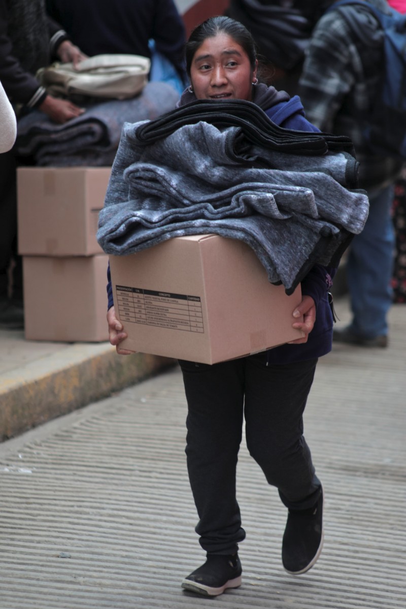 “Es la primera vez que nos llega este apoyo y nos sirve de mucho, donde vivimos las temperaturas están por abajo de los 9 grados”, agradeció la señora Fidencia Ramírez Inés, de Tepantla, municipio de Astacinga, donde la Caravana llevó mil 087 despensas y 2 mil 320 cobertores para 16 comunidades.