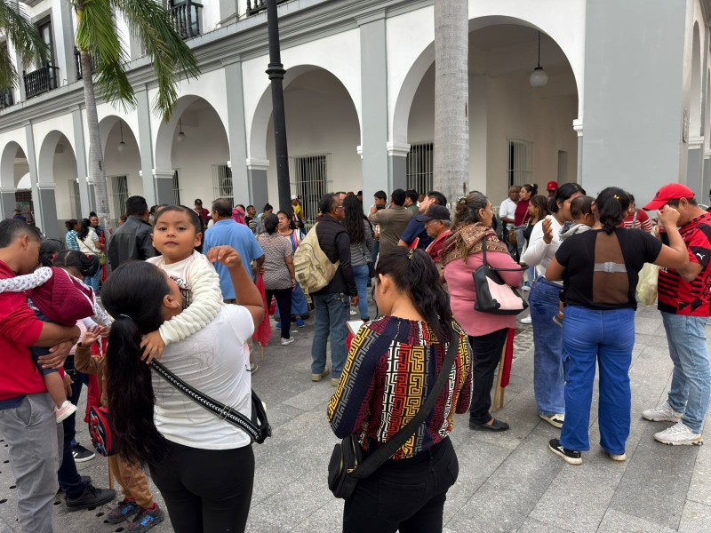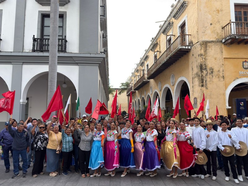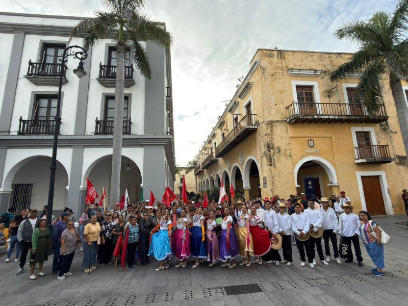 Integrantes del Movimiento Antorchista se manifestaron a las afueras del palacio municipal del ayuntamiento de Veracruz para exigir atención y obras básicas en sus colonias.
