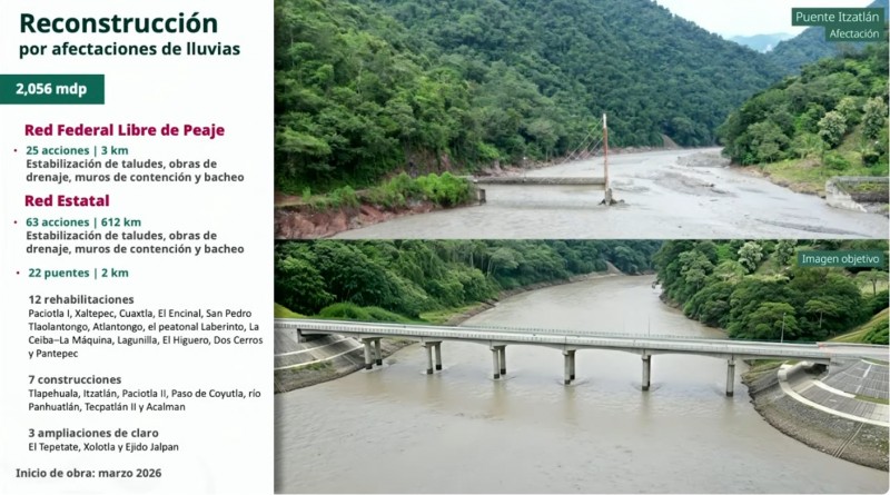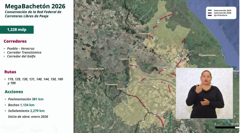 Esta intervención forma parte del presupuesto global de 50 mil millones de pesos anunciado por la presidenta Claudia Sheinbaum Pardo para devolver la funcionalidad a la red carretera federal libre de peaje durante este año.