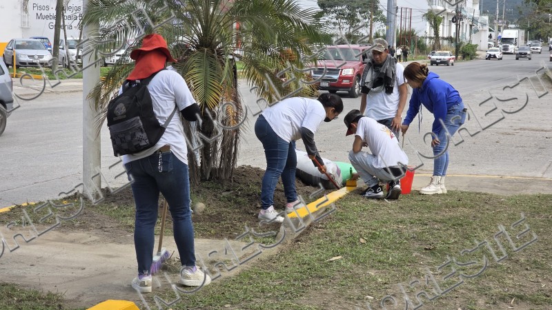 Uno de los puntos donde se concentran los trabajos es el bulevar Adolfo Ruiz Cortines, una de las vialidades con mayor afluencia vehicular y peatonal, donde se realizan acciones de retiro de residuos, saneamiento de áreas comunes y mejoramiento del entorno urbano.