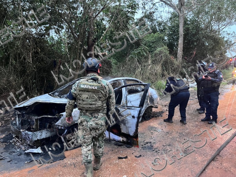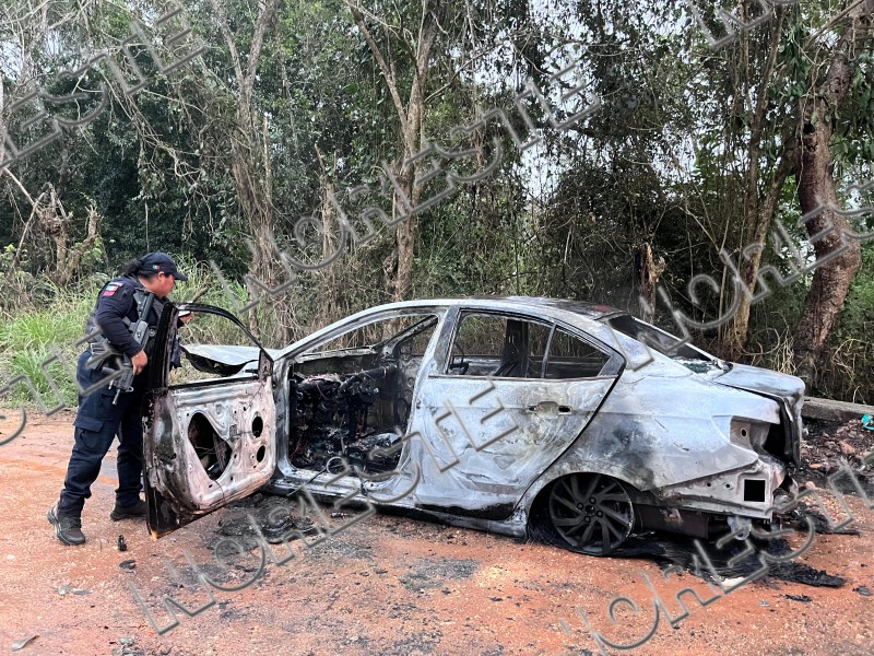 Autoridades de los tres niveles de gobierno desplegaron un operativo la tarde de este jueves tras el hallazgo de un taxi completamente calcinado en un camino de terracería de la colonia Revolución, en el municipio de Acayucan.