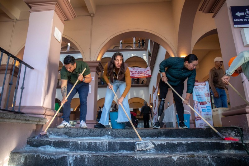 Con el objetivo de fomentar la conservación, dignificación y cuidado permanente de los espacios públicos donde se brinda atención y servicios a la ciudadanía, el Síndico Único, Dr. Marco Aurelio Martínez Sánchez, encabezó este domingo el Tequio en Palacio Municipal, acompañado de Regidoras, Regidores y funcionariado del Ayuntamiento de Xalapa.