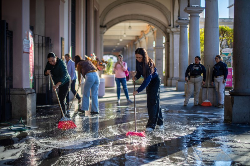 La jornada, organizada por la Dirección de Juventud, que dirige el Lic. Rafael Alarcón Barrientos, contempló diversas acciones de limpieza, ordenamiento y mantenimiento en áreas comunes e instalaciones del inmueble, como parte de una estrategia integral para fortalecer la cultura del cuidado del patrimonio público y mejorar las condiciones de los espacios de trabajo y atención ciudadana.