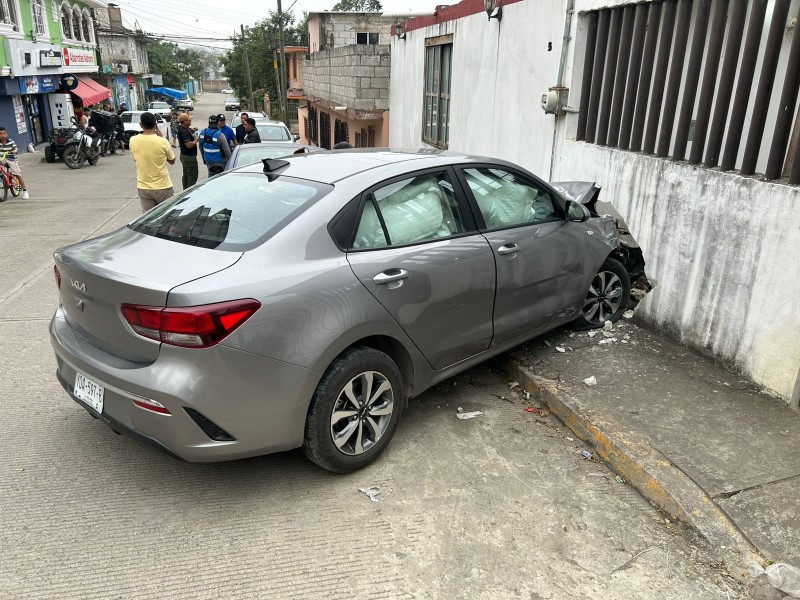 Un accidente vehicular se registró en la calle Expropiación Petrolera de la colonia Insurgentes, cuando una abuelita de aproximadamente 65 años de edad perdió el control del volante en su vehículo Kia color gris. El incidente ocurrió cuando el vehículo bajaba por una pendiente y la conductora no pudo controlar el volante, lo que provocó que se estampara contra la barda de una casa.