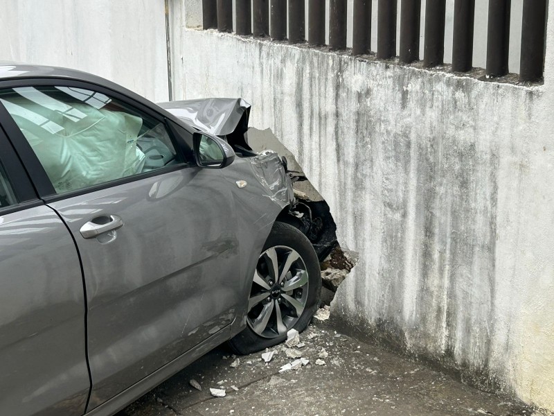 La colisión causó grandes daños en la barda perimetral del domicilio y en el vehículo, que sufrió daños materiales significativos y activación de las bolsas de aire, lo que lo dejó prácticamente inservible.