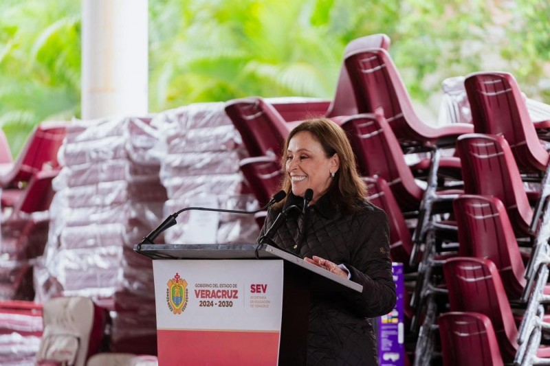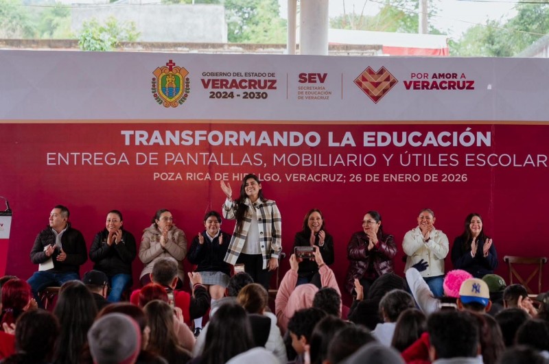 En el marco de su visita a Poza Rica, la Gobernadora realizó también la entrega de mochilas, mobiliario, útiles escolares y pantallas, como parte de las acciones para fortalecer la educación y mejorar las condiciones de los centros escolares.